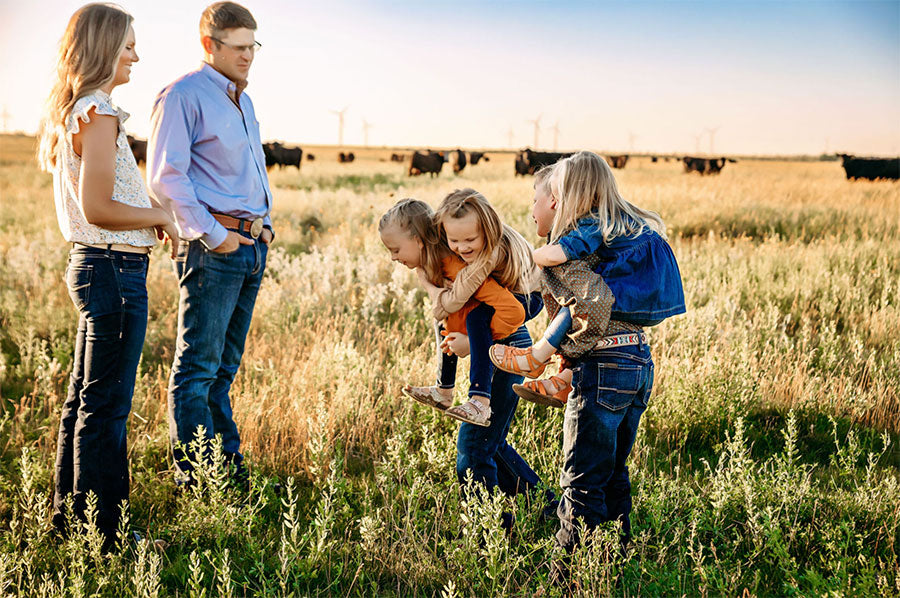 For the Olson Family, Lyon Ranch Beef is a commitment to their community, their customers, and the future of South Dakota agriculture. As lifelong local producers, they take great pride in raising premium Black Angus cattle with the genetic merit to consistently grade Prime and Certified Angus Beef® (CAB). They're proud to offer 28-day dry-aged Angus beef, bred, born, fed, and processed entirely in South Dakota. Colby and Kendra are dedicated to growing their business within the community and delivering a product that their friends, and neighbors can be proud to serve at their tables.